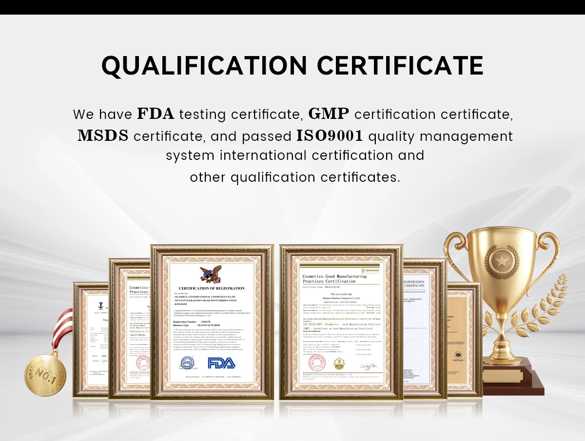 *Achieved international certificates such as ISO9001, ISO22716, GMPC, MSDS etc.